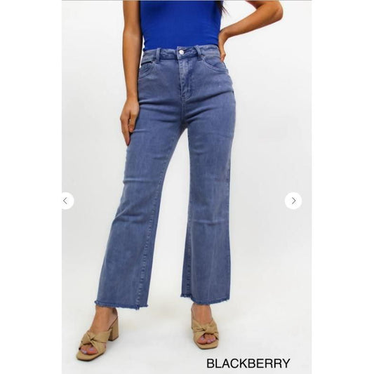 High Waist Straight Acid Wash Frayed Bootcut Jeans, Ocean Blue