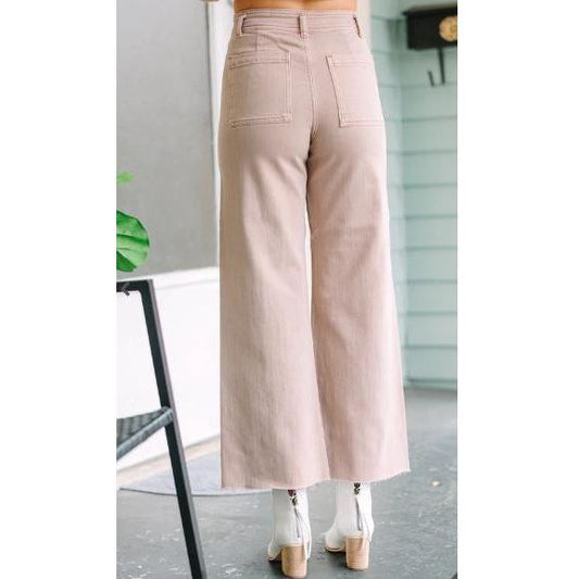 HIGH RISE CLEAN CUT RAW HEM WIDE JEANS