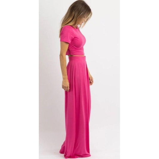 Hot Pink Crop Top & Palazzo Pant Set