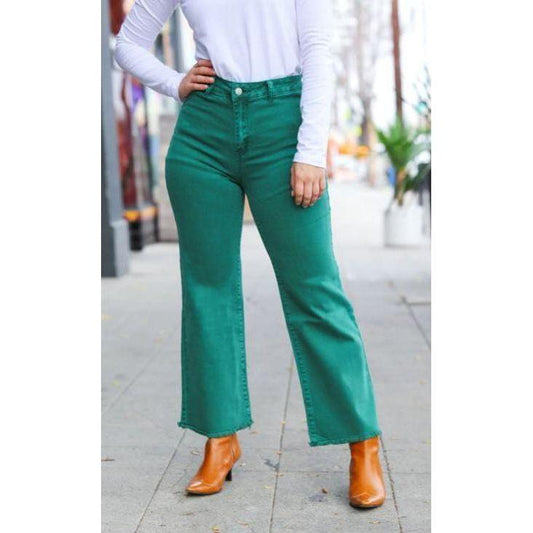 High Waist Acid Wash Frayed Bootcut Jeans, DARK GREEN