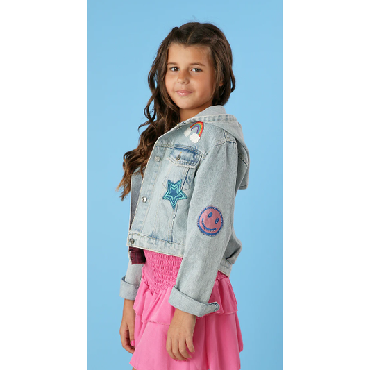 Hannah Banana Vintage Wash Denim Jacket with Motifs