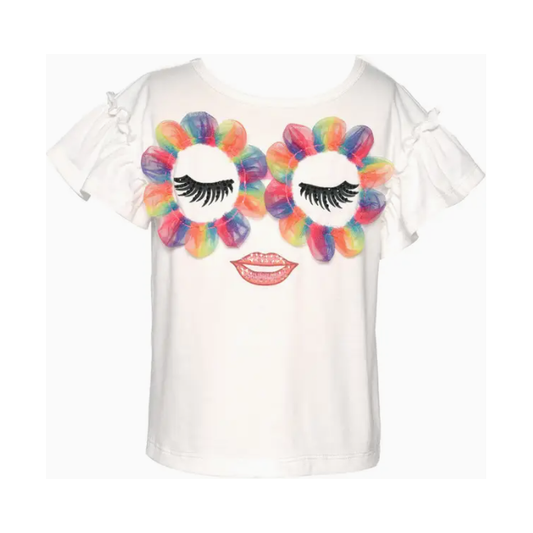 Hannah Banana Ruffle Sleeve Top w/ Flower Glasses Girl Print