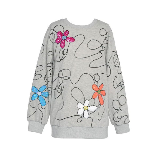 Sweatshirt Tunic with Scribble and Sequin Flowers