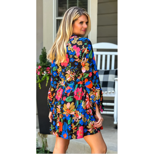 Majestic Memories Tiered Babydoll Dress : Black Floral