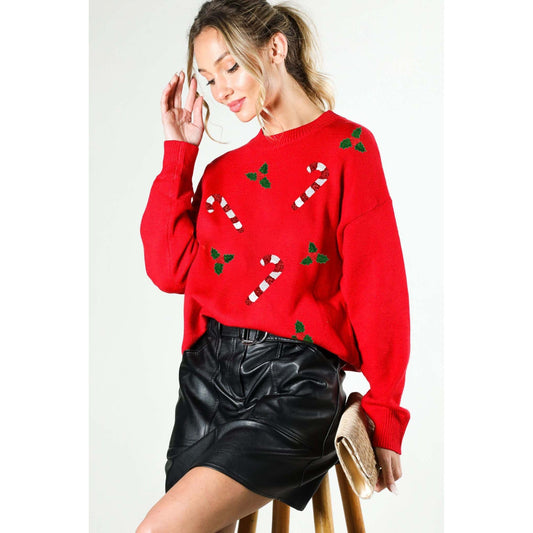 Red Christmas Candy Cane Sequin Detail Sweater