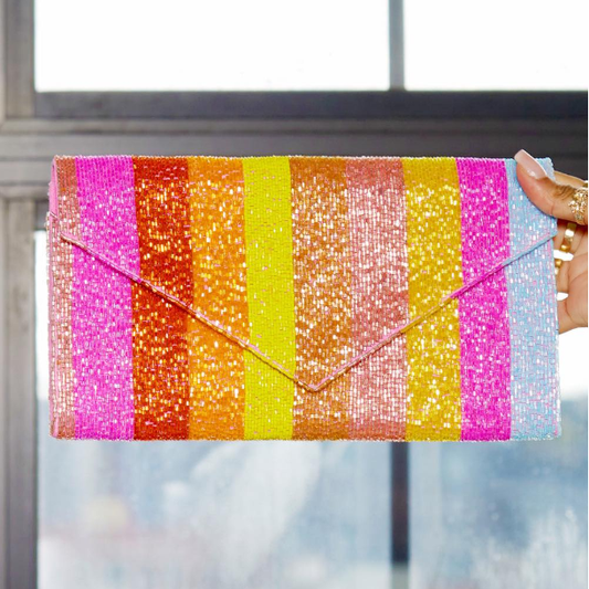 Treasure Jewels Beaded Stripe Rainbow Clutch
