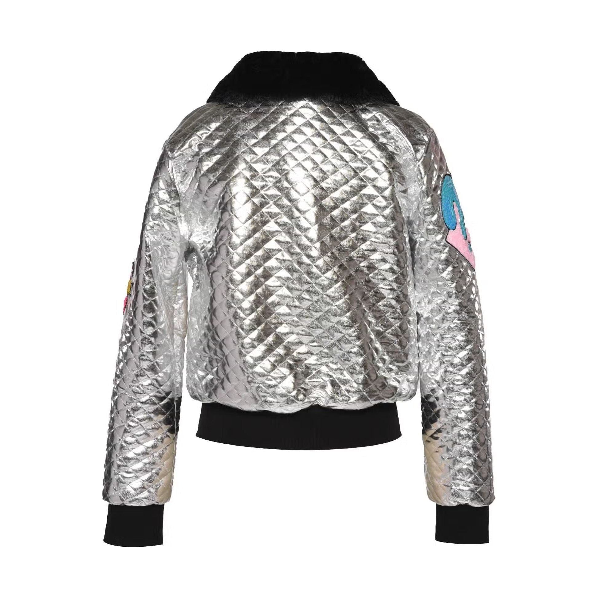 Introducing our dazzling girls' quilted silver jacket, a true showstopper! This eye-catching piece combines comfort and style with a touch of playful charm. The quilted design not only keeps her warm and cozy but also adds a trendy texture to her ensemble. And let's not forget fun patches that add a pop of color and personality.