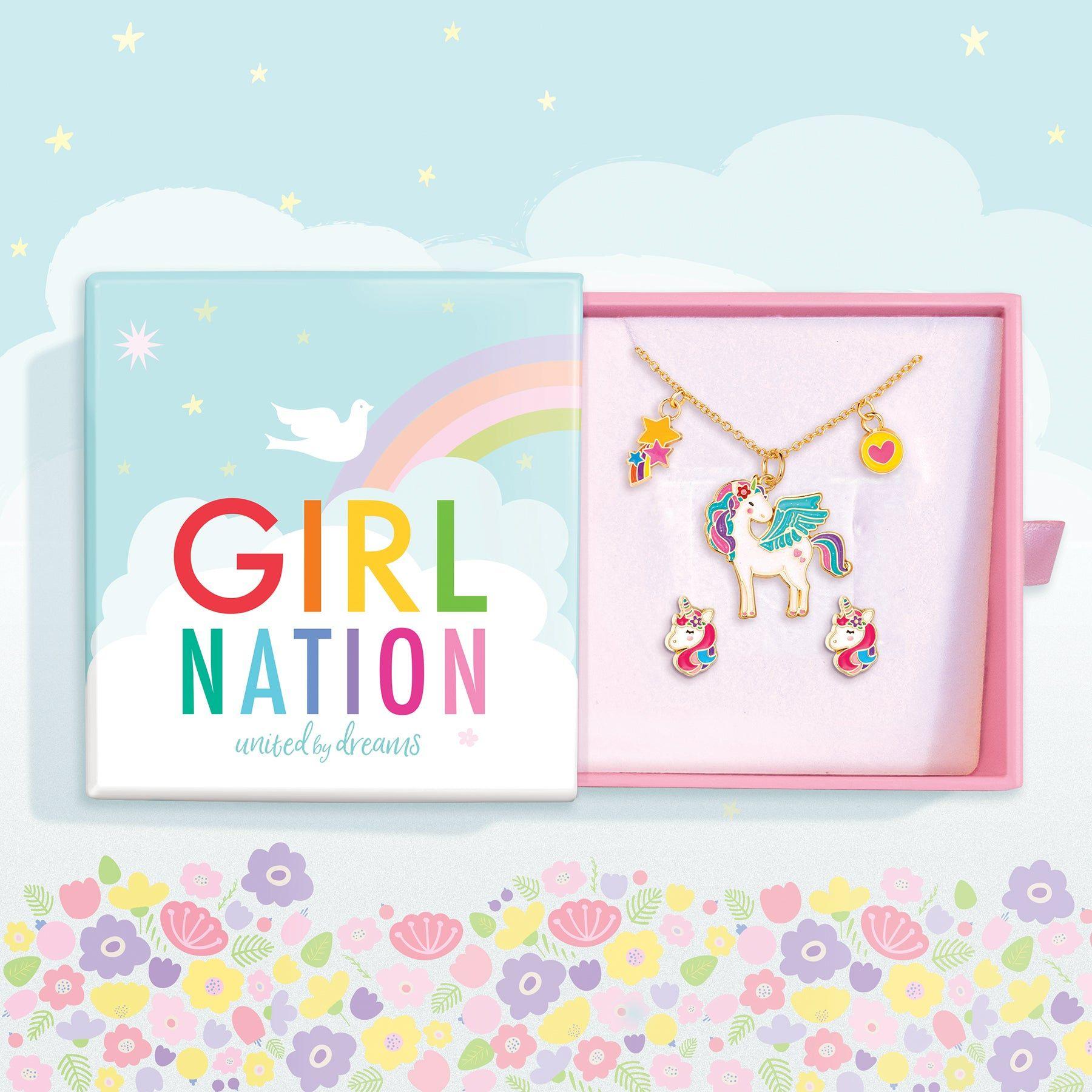 Charming Whimsy Necklace and Earring Gift Set- Unicorn Dreams