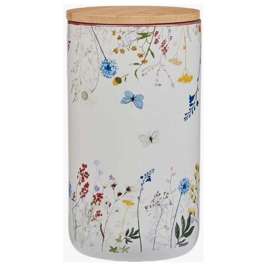 A bamboo lid with a silicone seal fits tightly into the jar's opening. Taking note of your blessings is easy with the included 365 tear-off note cards. The cards feature a mustard yellow background, a base of wildflowers, and a gratitude-themed Scripture verse on the front. There is space to record your blessing on the back.