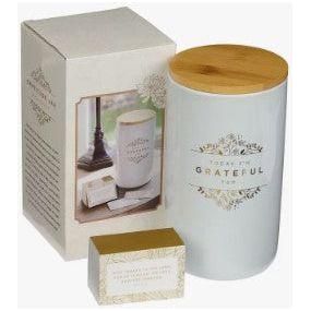 Grateful Gold and White Ceramic Gratitude Jar with Cards