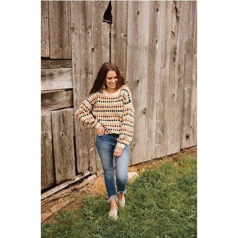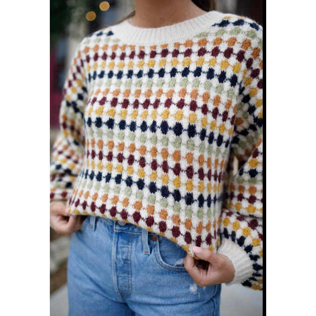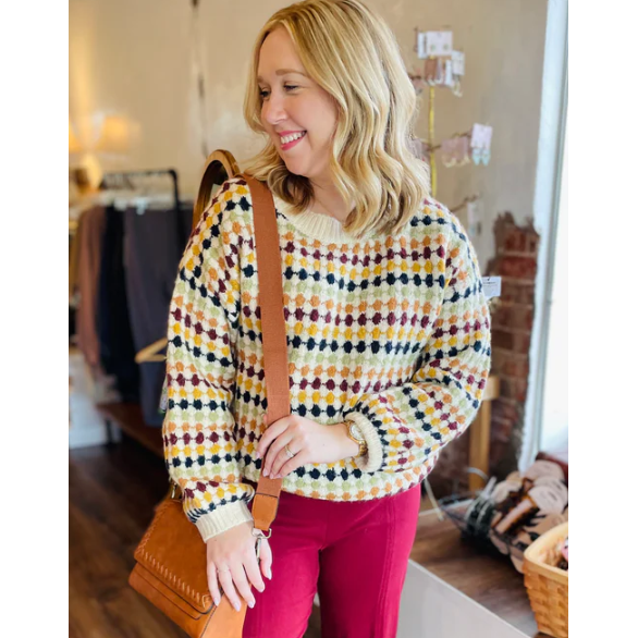 Greta Multicolor Fall Dotted Crew Knit Sweater