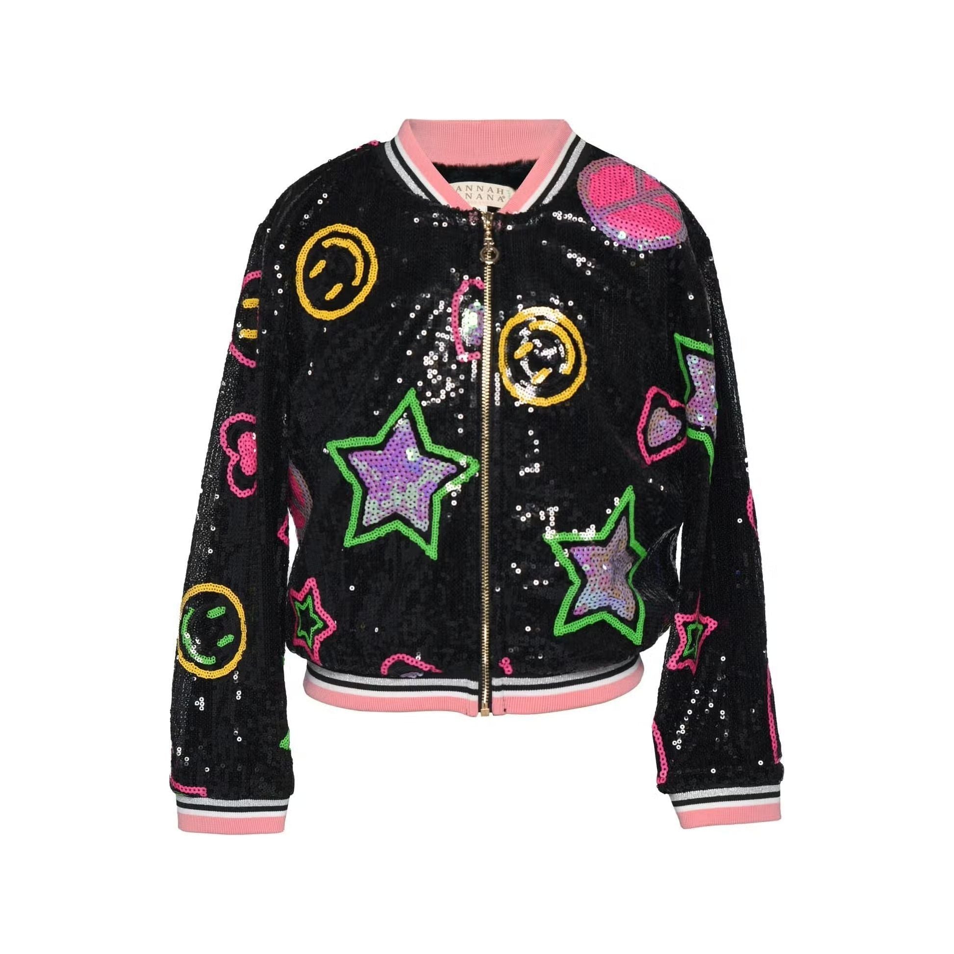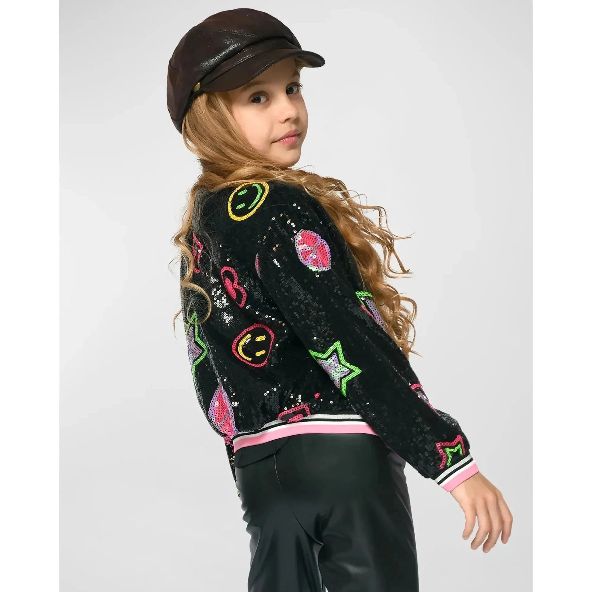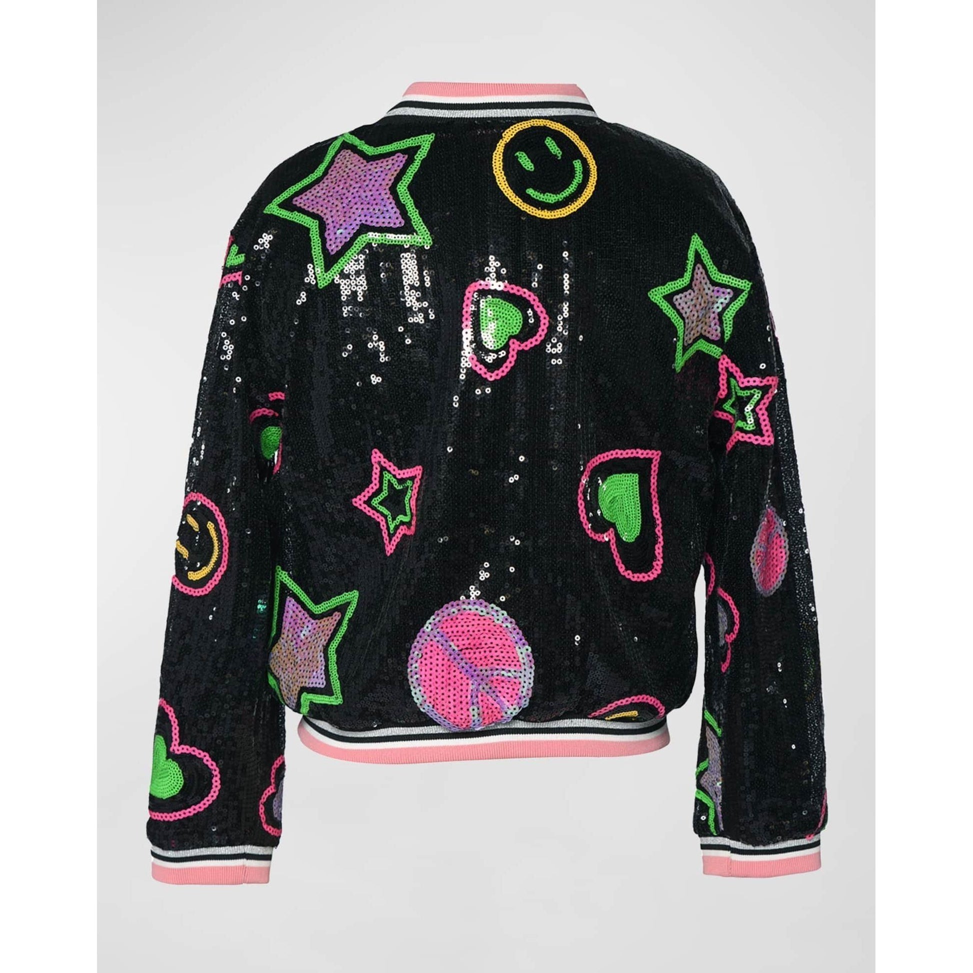 Hannah Banana Girl's Sequin Star & Happy Face-Print Bomber Jacket