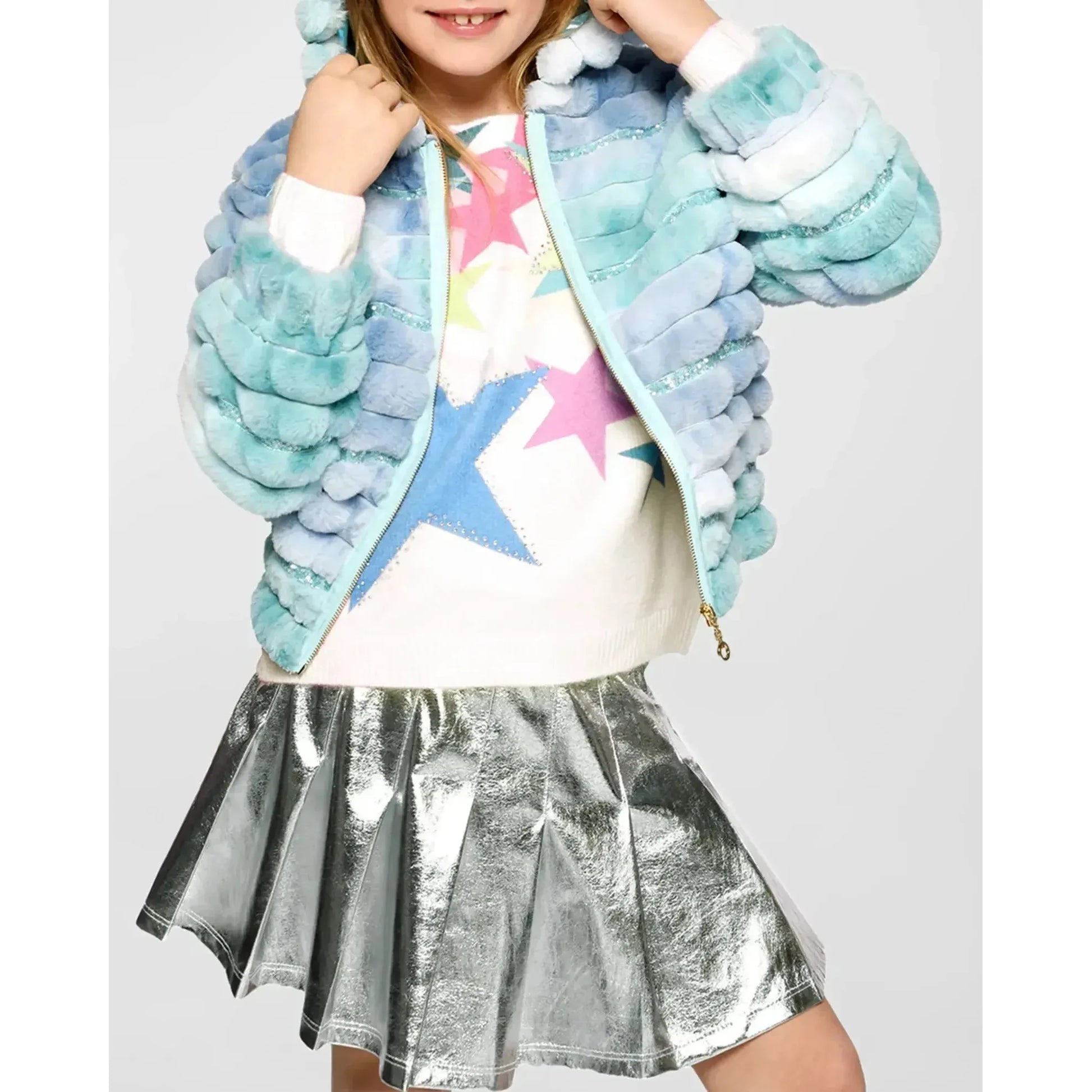 Hannah Banana Girl's Tie Dye Faux Fur Coat
