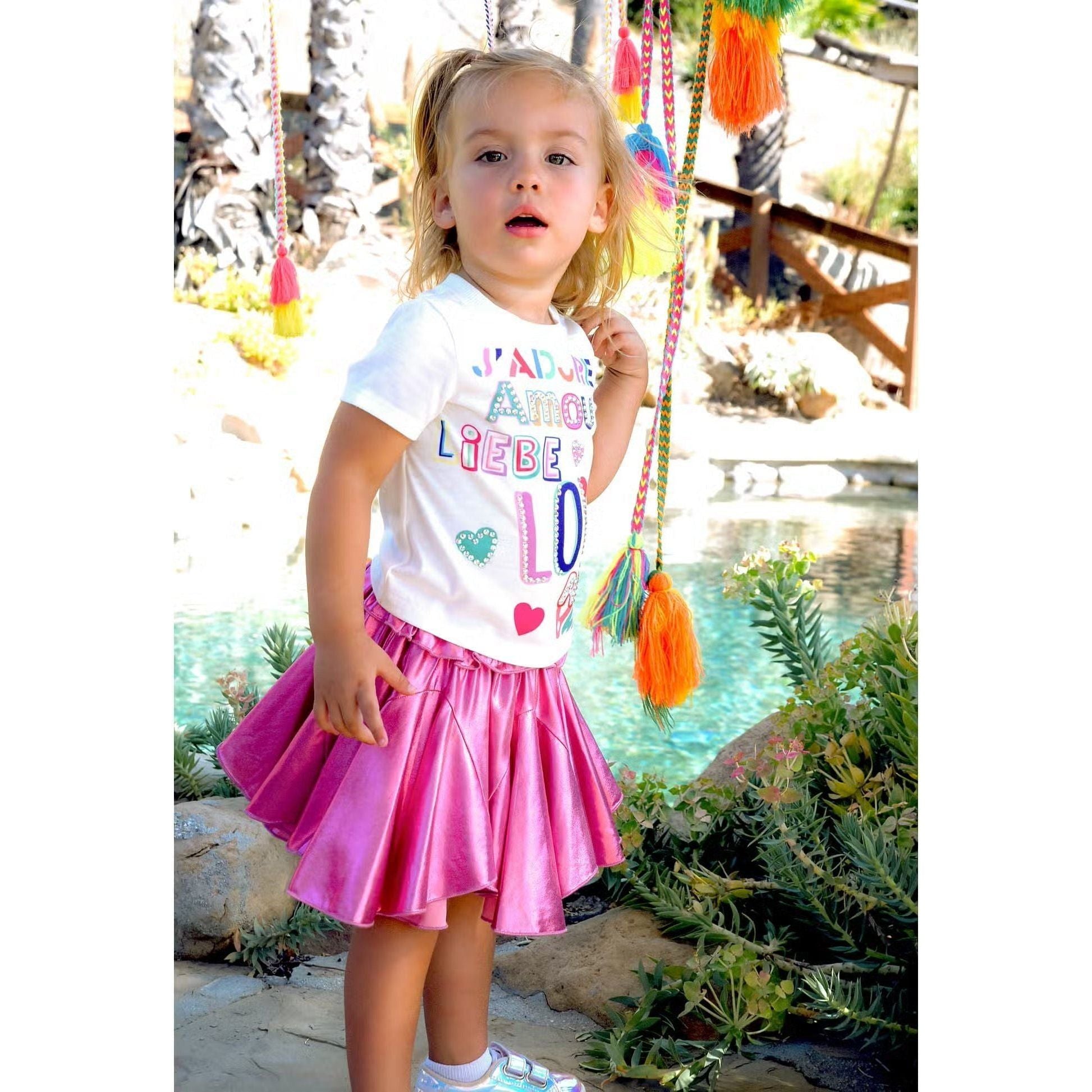 This is just a must! This little skater skirt is the cutest ever. Trendy style for toddler girls and little girls too. This matches up perfectly with so many of the sweet tees and tanks in this seasons collection.