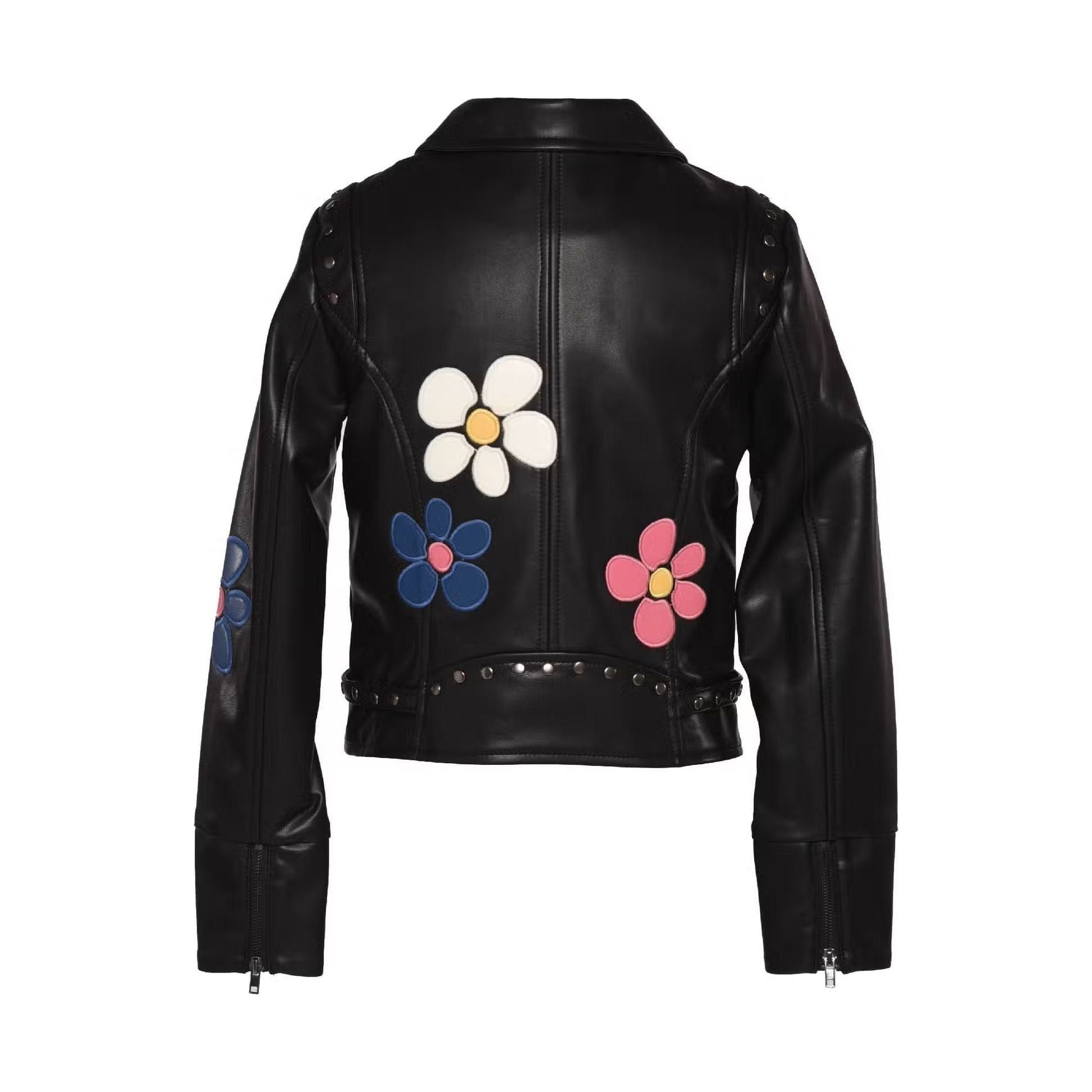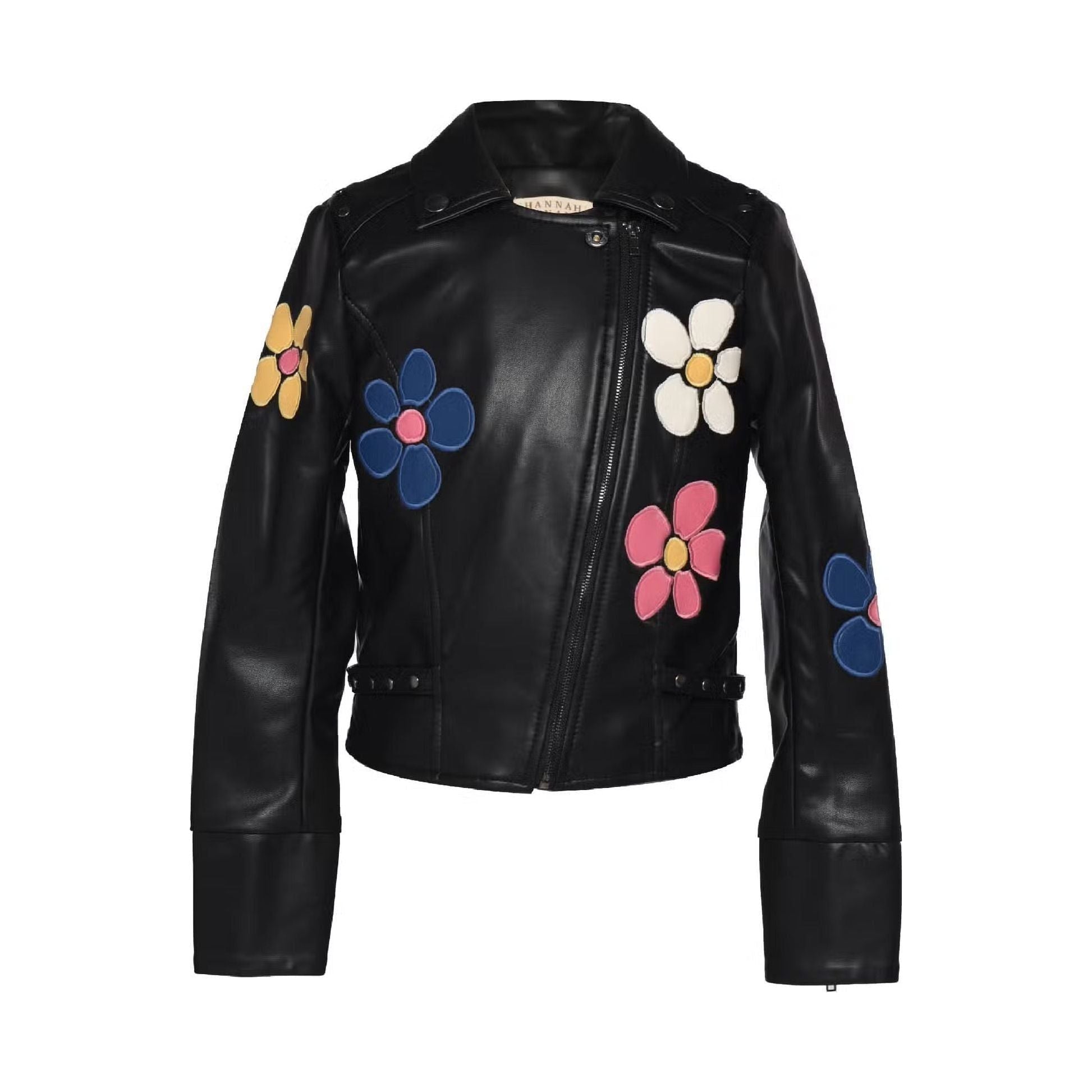 Hannah Banana Girl's Faux Leather Floral-Patched Jacket
