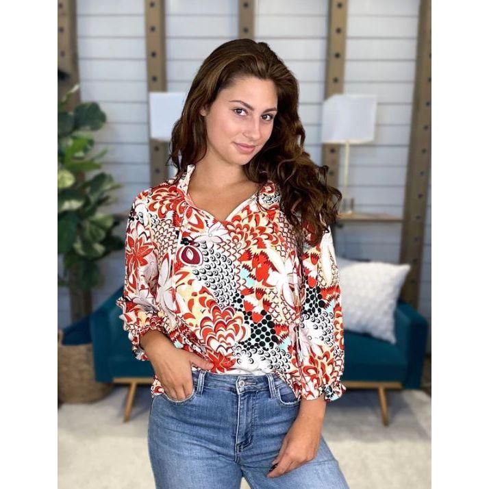Jofifil Bloomin Burnt Orange Ruched Sleeve Top