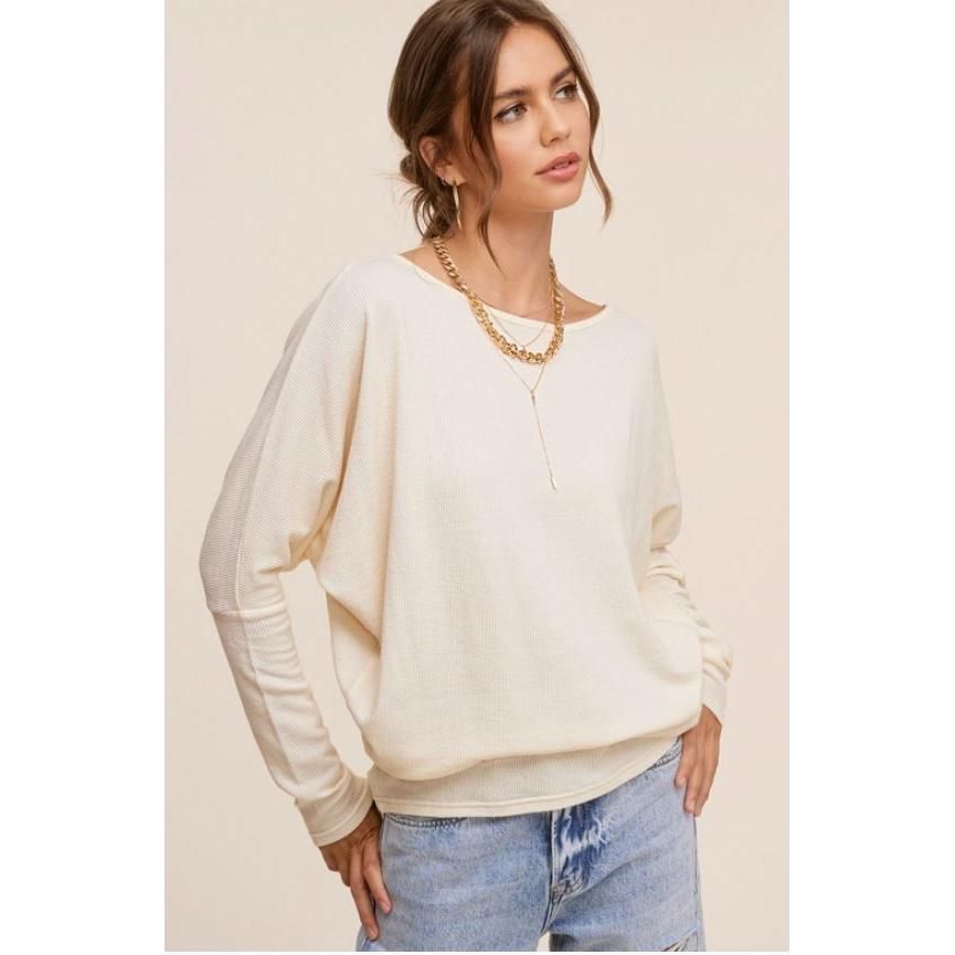 This gorgeous two-tone top has a loose-fit style with batwing sleeves. Dress this one up or down effortlessly.