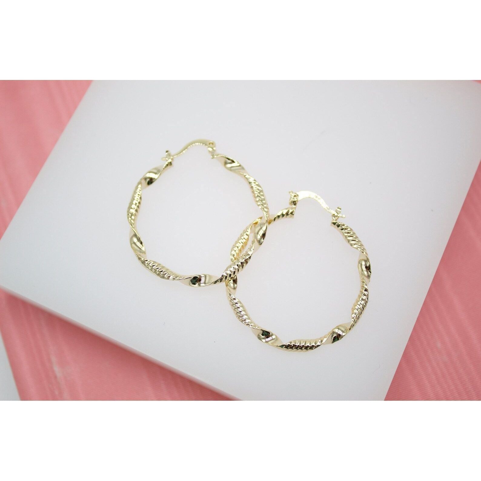 18K Gold Filled Large Twisted Lever back Hoop Earrings