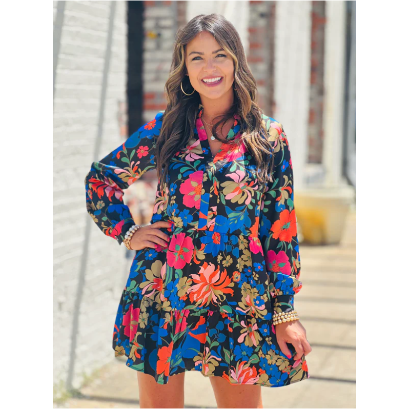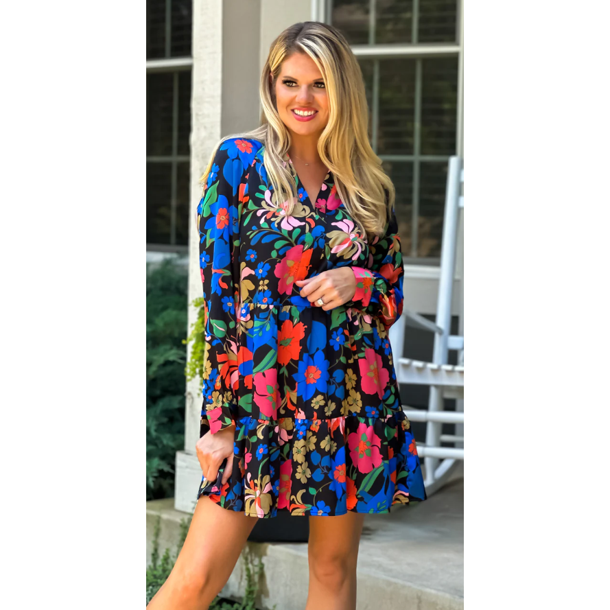 Majestic Memories Tiered Babydoll Dress : Black Floral