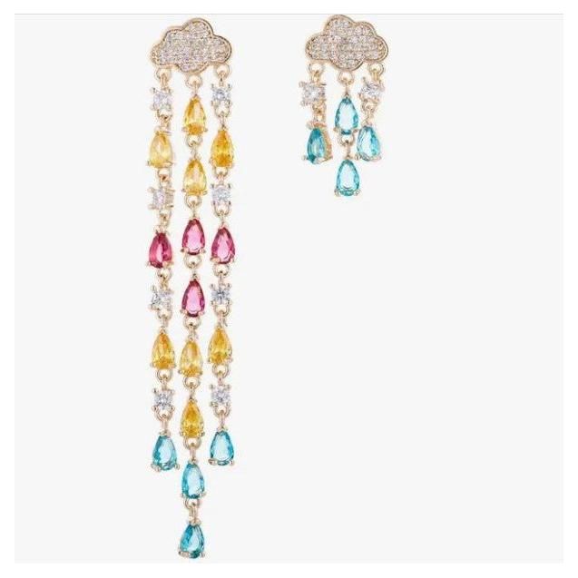 We love this pair of mix and match earrings. Puffy clouds and raindrop cubic zirconia raindrop sparkles are the cutest.