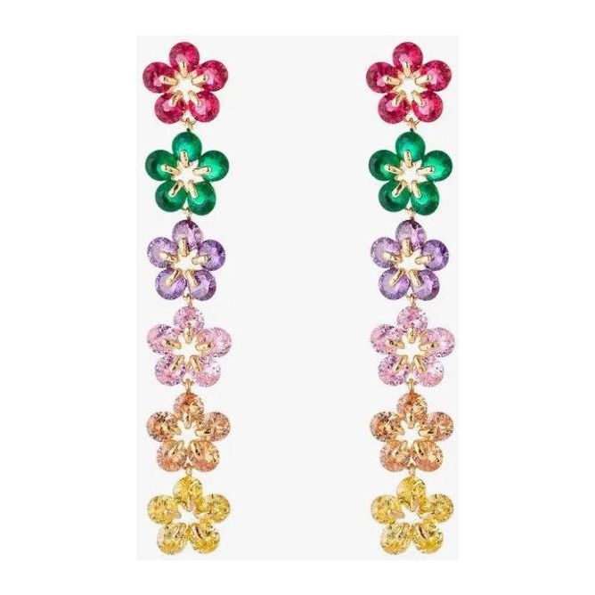 Multicolored flowers studded with CZ crystals cascade gently down the ear to create this pair of beautiful drop earrings. Add these flower earrings to your favorite summertime outfit to complete the look!