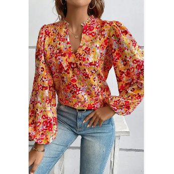 - Spring Dream Floral Hathaway Split Neck Blouse