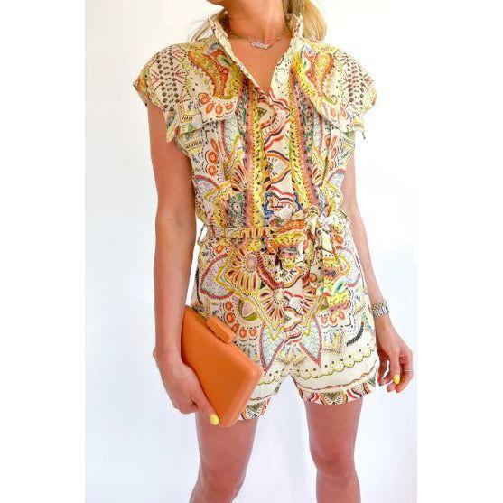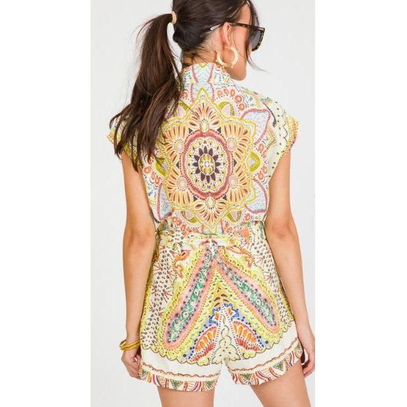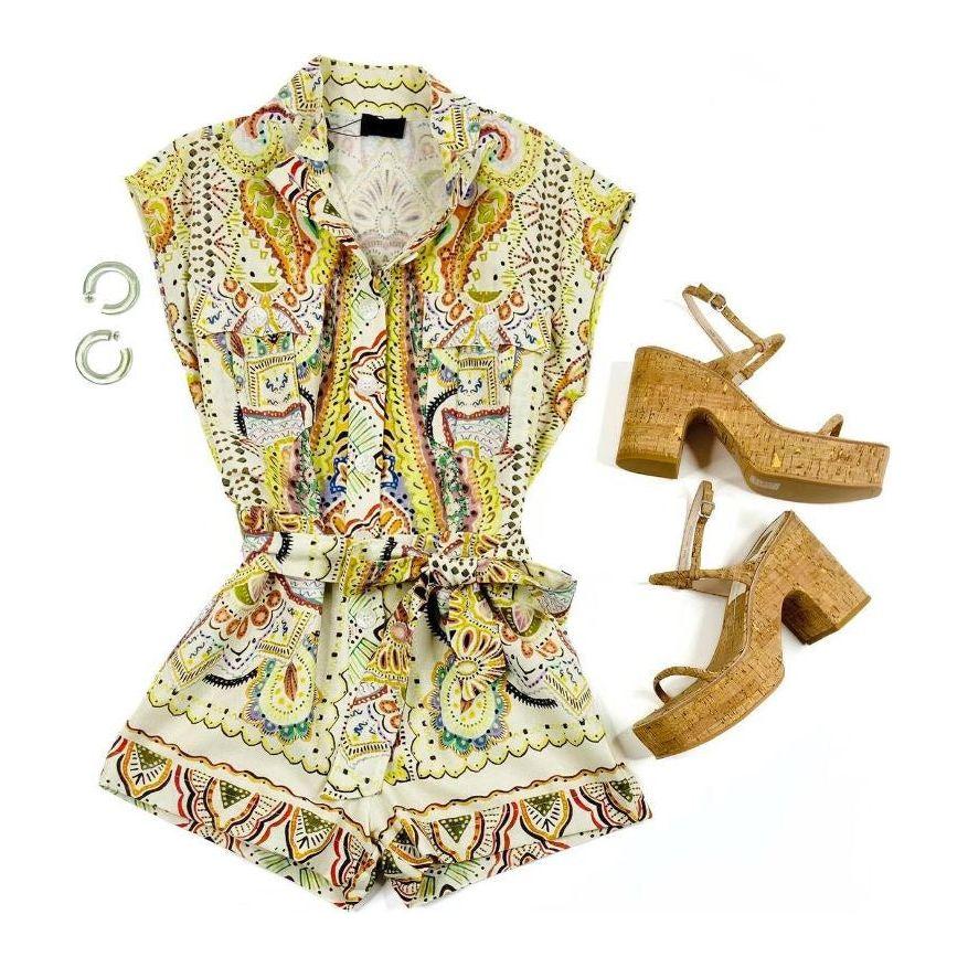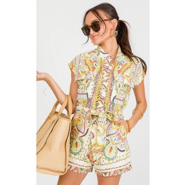 Paisley Print Linen Romper