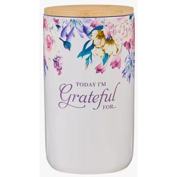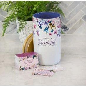 Today I'm Grateful For Purple Floral Ceramic Gratitude Jar with Cards