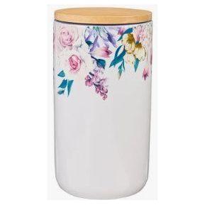 This beautiful ceramic jar is made of high-quality and durable ceramic with a gloss seal and a securely fitting bamboo lid. Soft-hued flowers in shades of pink, yellow and purple cascade down from the rim of the jar and draw your eyes to the sentiment that is presented in a multi-font design