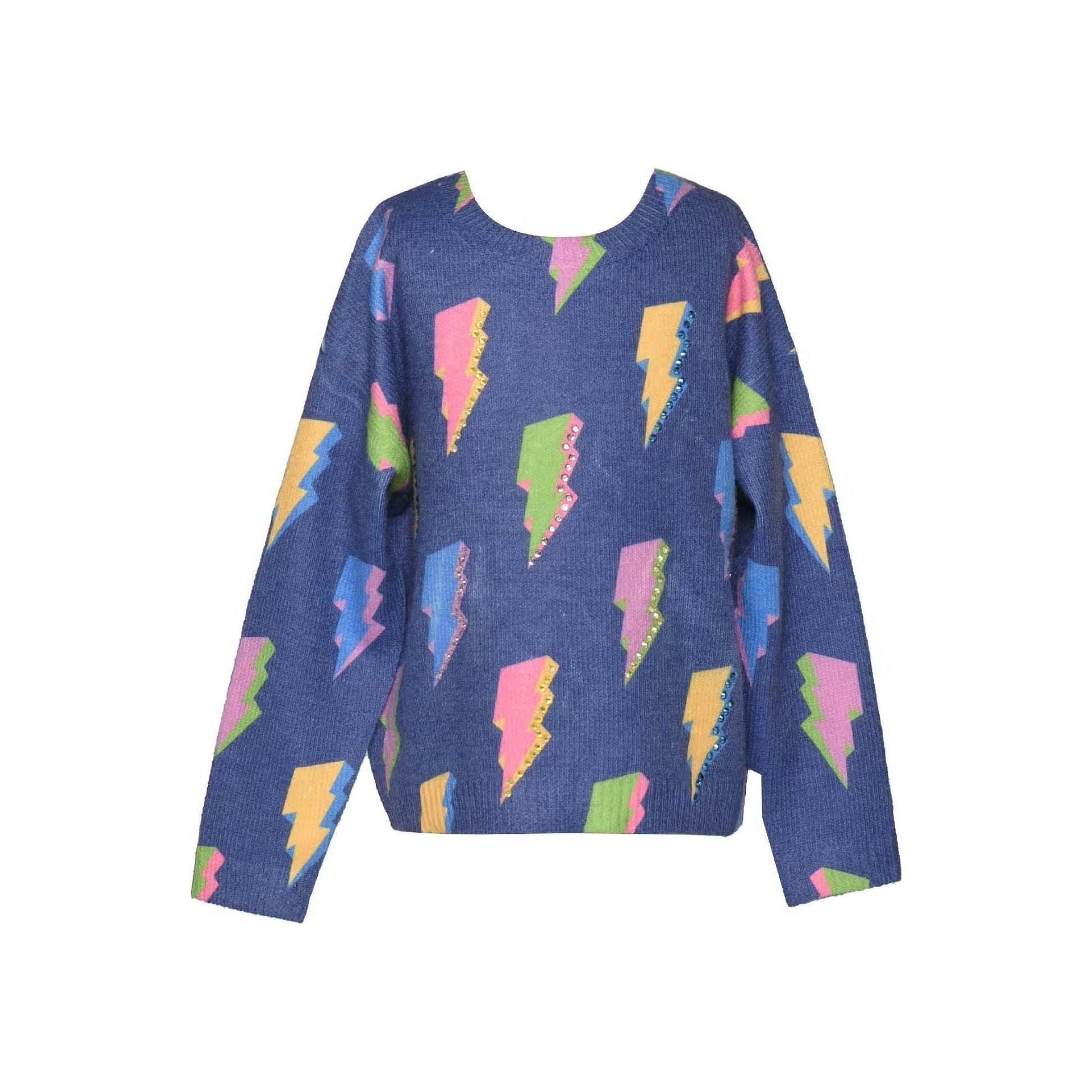 Truly Me Kid's Embellished Lightning Bolt Crewneck Sweater
