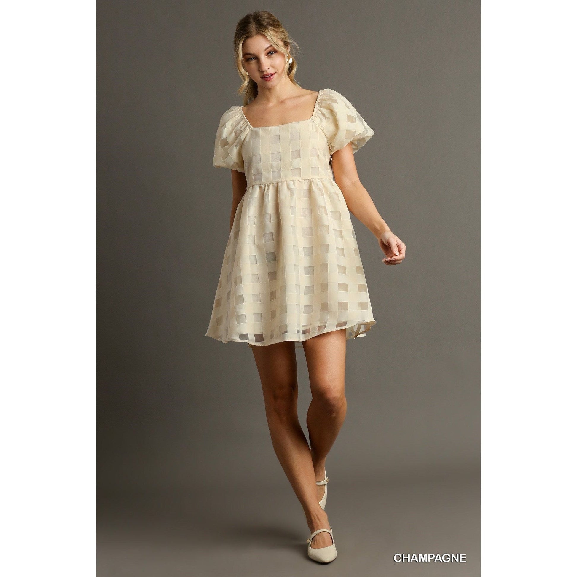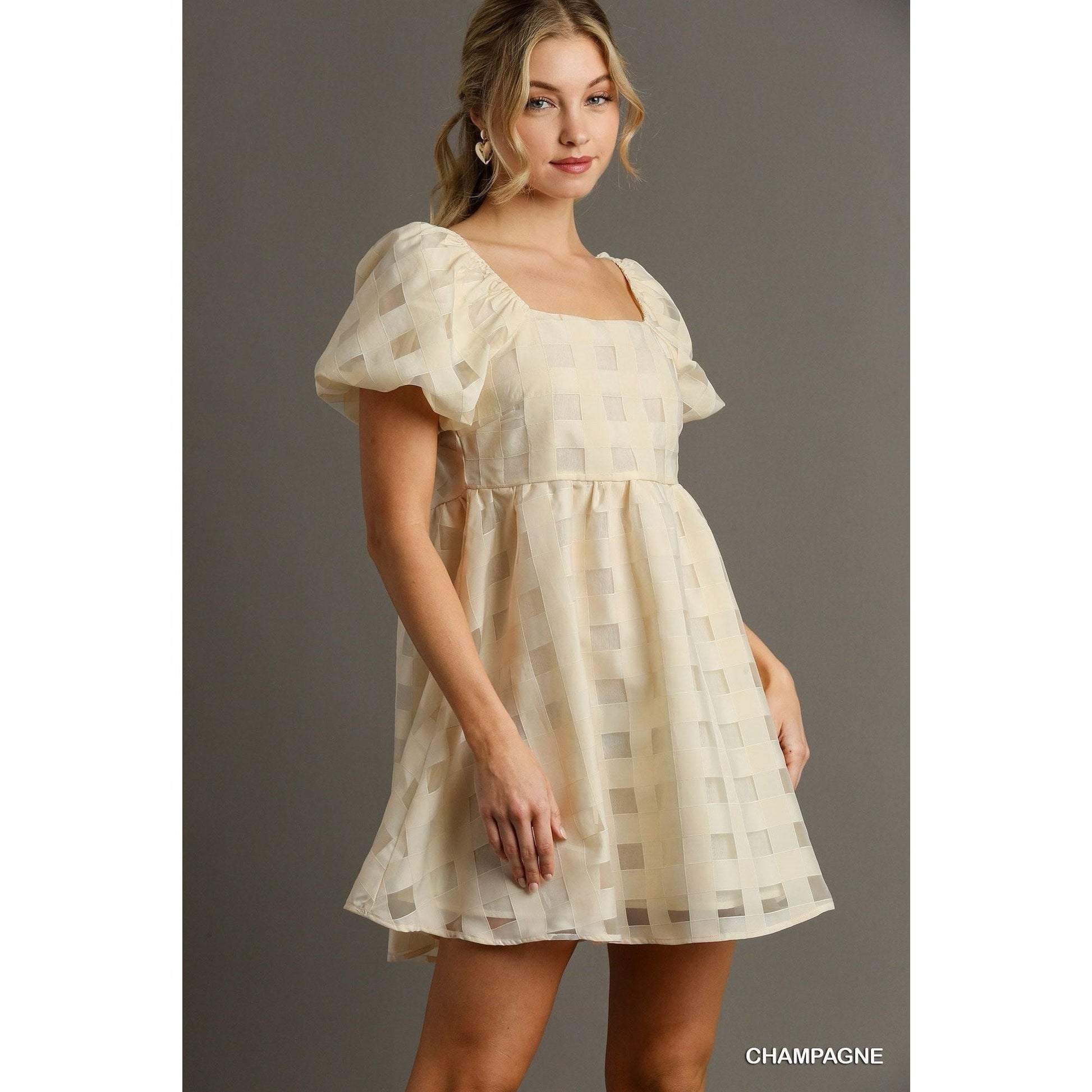 Be the center of attention in this stunning fuchsia checkered dress. With its eye-catching statement pattern and flattering babydoll fit, you'll be the epitome of girly chic. Puff sleeves, a soft inner lining, and gentle ruching detail give the piece a delicate air, while the smocked panel ensures both comfort and a beautiful silhouette. The perfect balance of bright, vibrant color and sweet femininity, this delightful dress is sure to light up any spring or summer day.