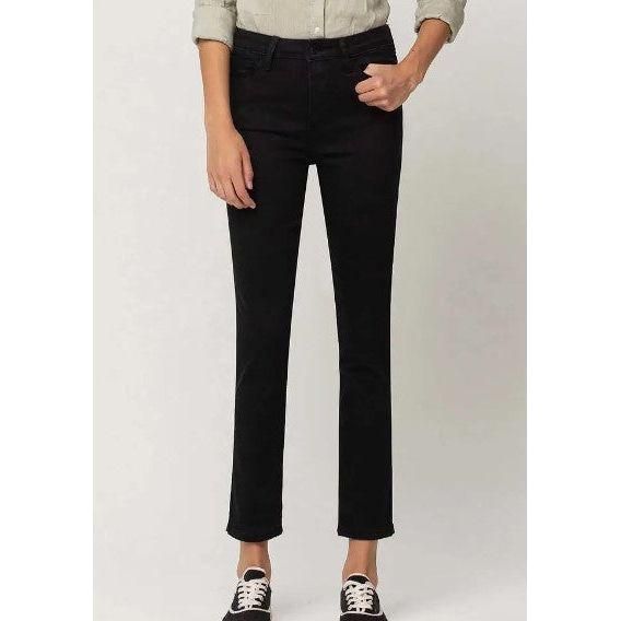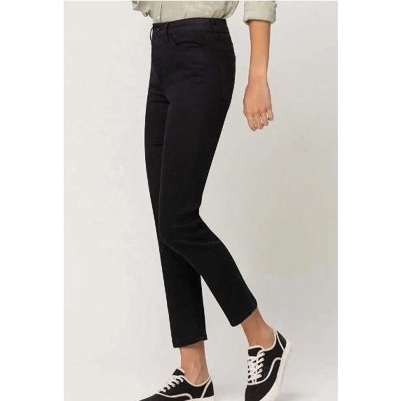 Vervet Black Washed High Rise Hidden Button Up Straight Ankle