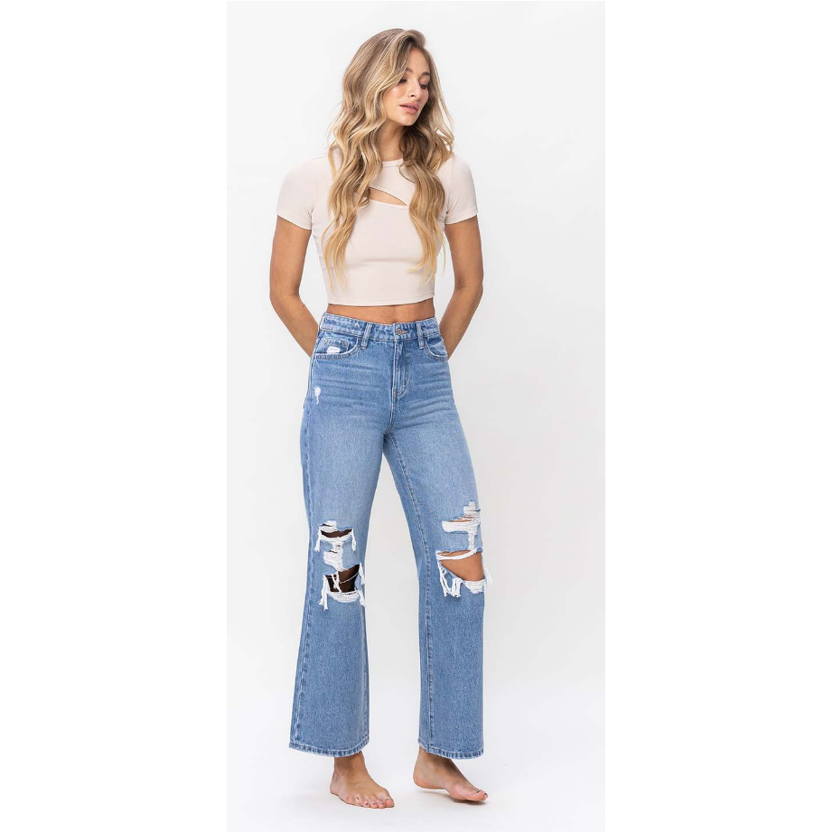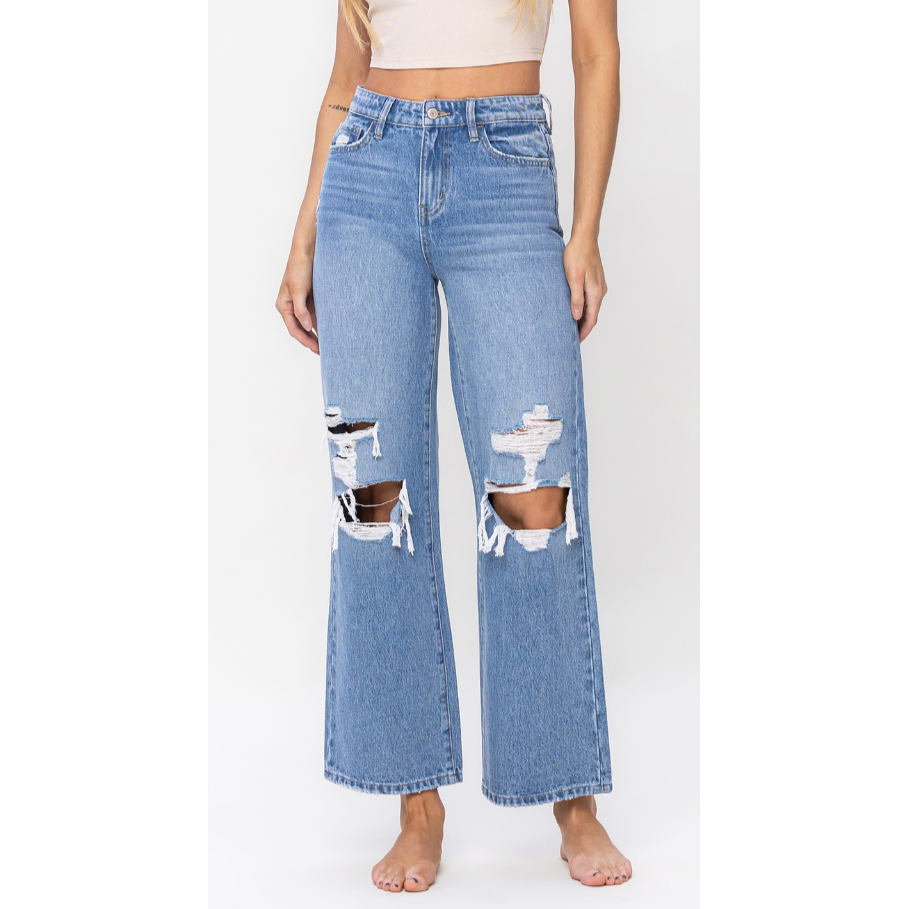 VERVET High Rise Distressed Wide Leg Jeans