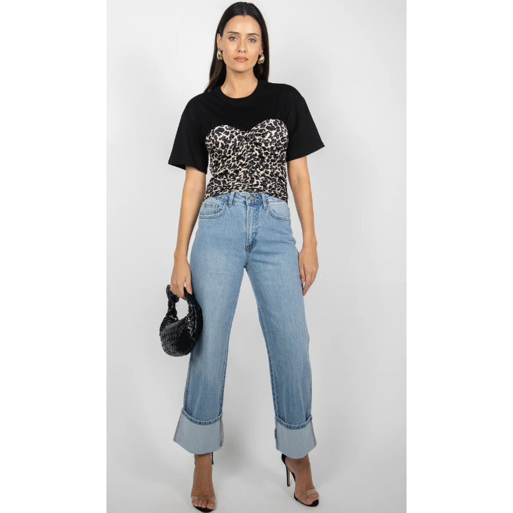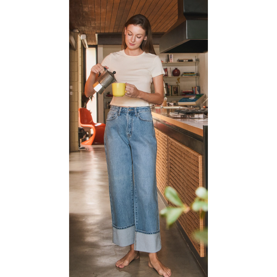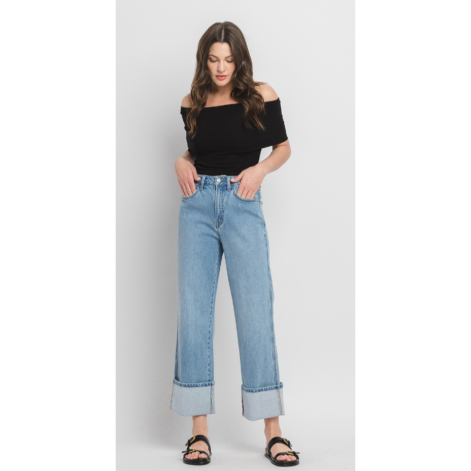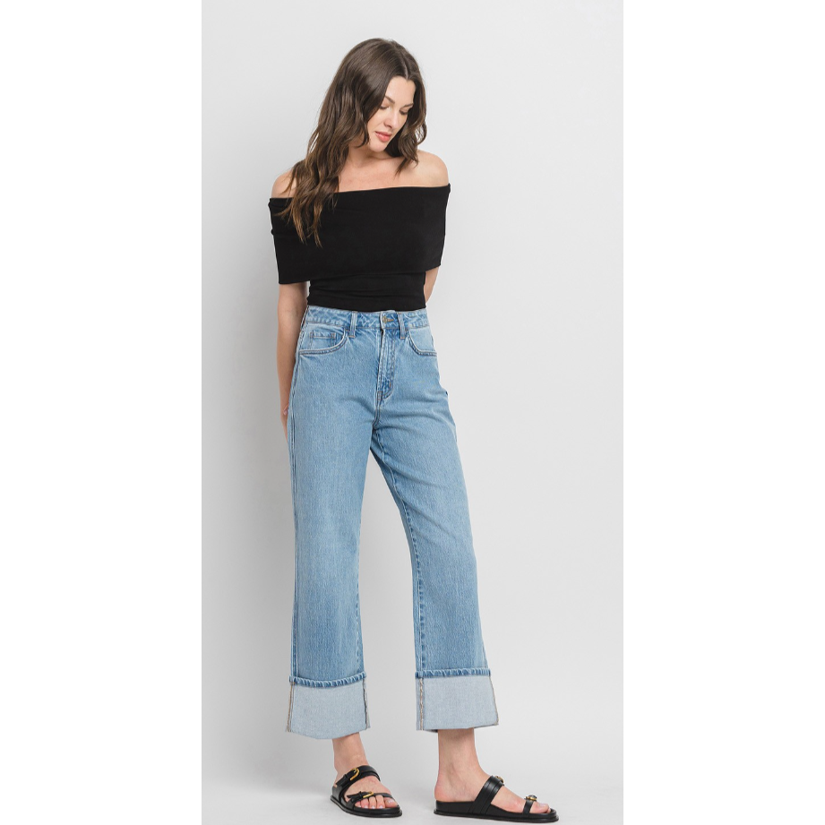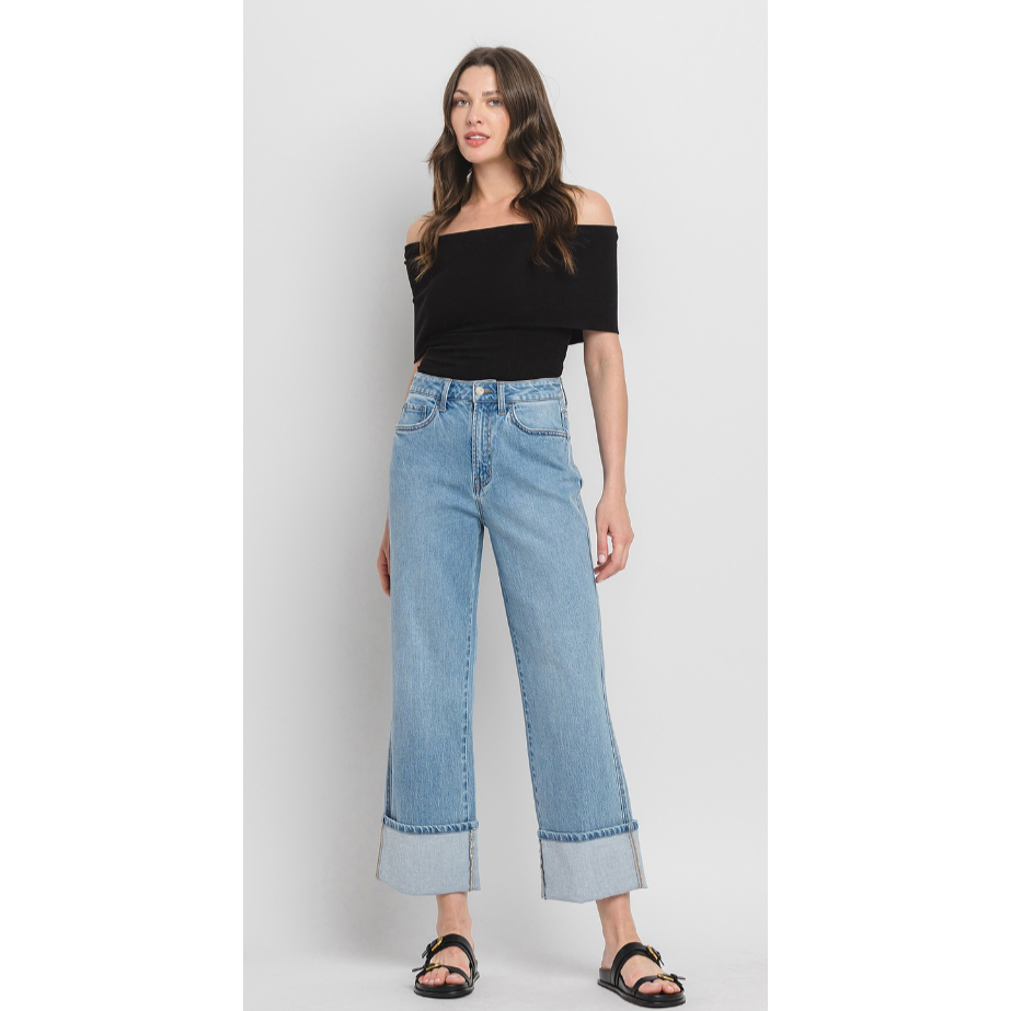 VERVET Super High Rise Cuff Baggy Wide Leg Jeans