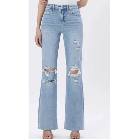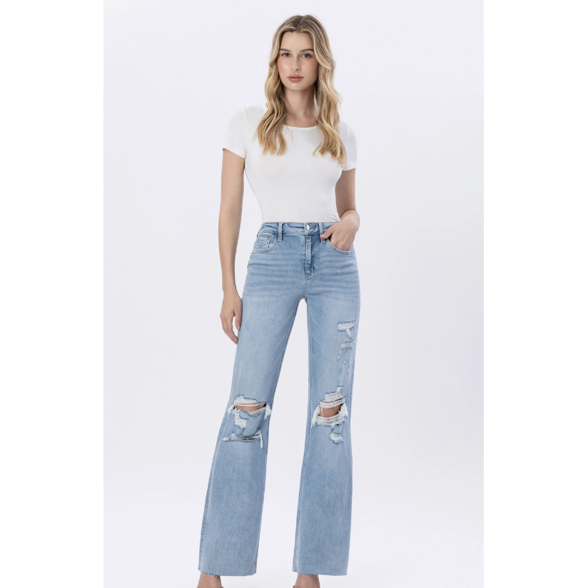 Perfectly distressed Vervet jeans in a light wash. Just cut the hem to adjust the length.