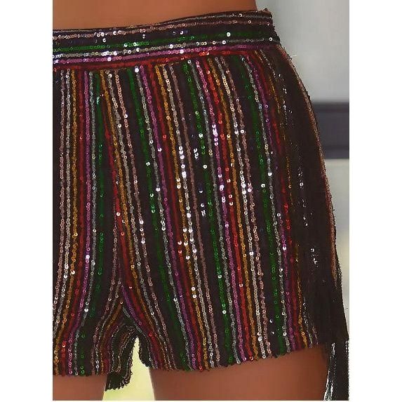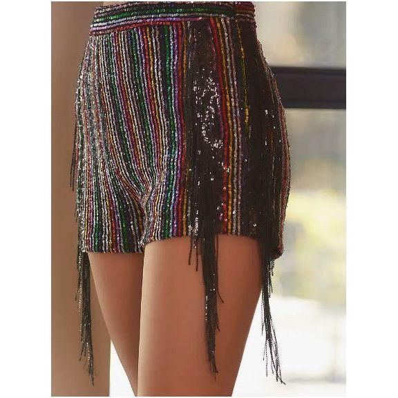 Side Zipper Fringe Multi Stripe Sequin Short.