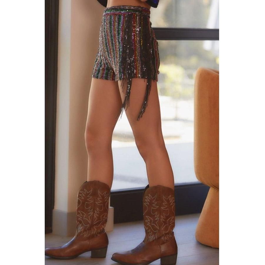Winnipeg Sequined Multi Stripe Tassel Shorts